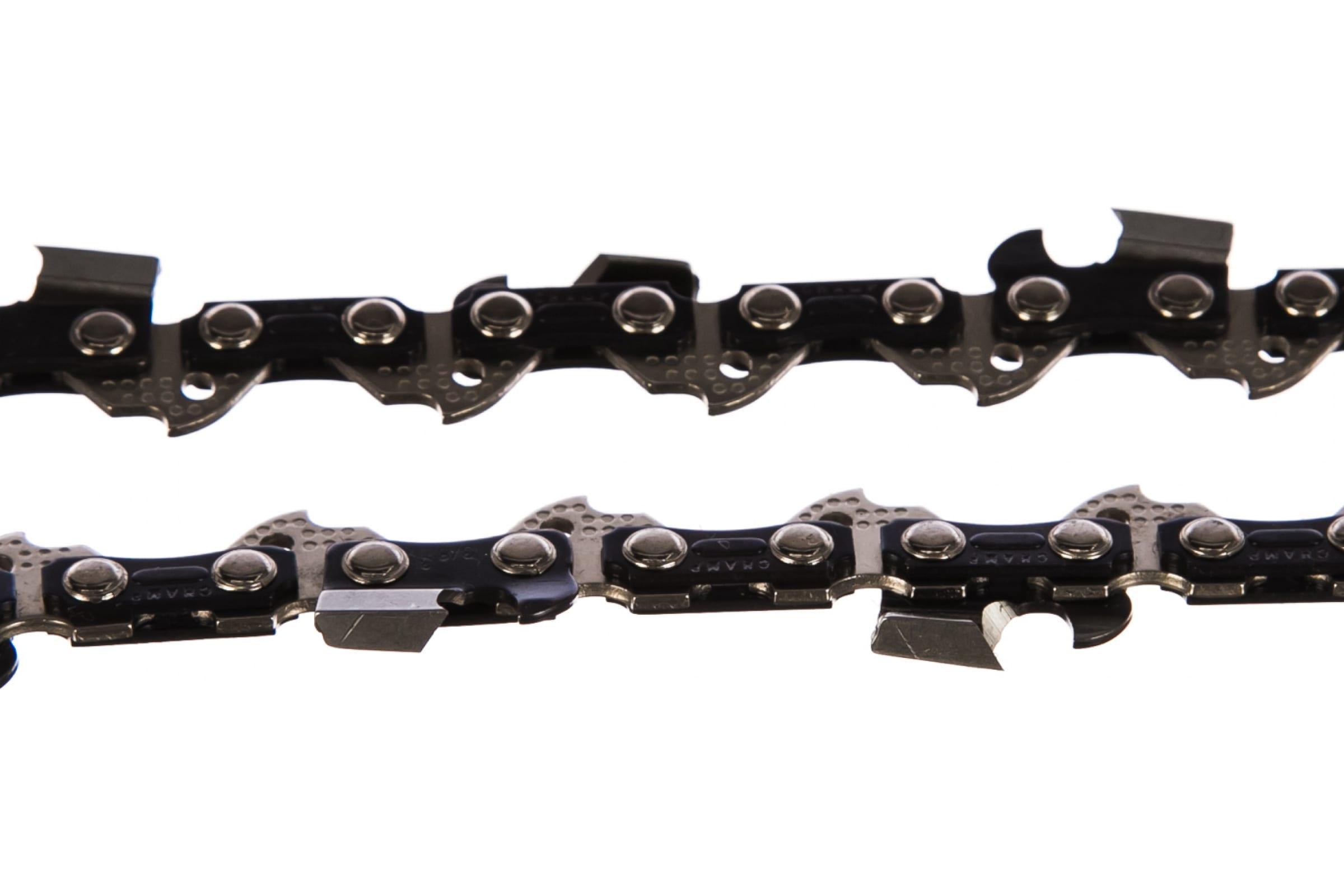 Цепь 3/8 - 1,1 - 50 звеньев Champion имеет долотообразные режущие звенья. Это позволяет цепи быстро врезаться в материал и производить рез, оставляя ровный и чистый срез. Благодаря отверстиям и углублениям масло хорошо распределяется по всей длине направляющей шины. Цепь отличается большим сроком службы, а также оснащена специальной канавкой для правильного угла заточки.
