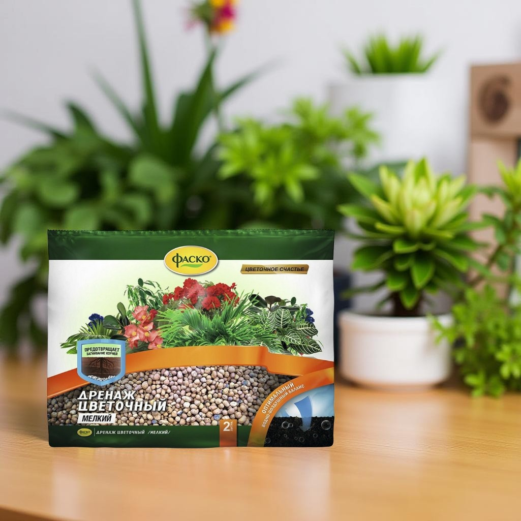 Дренаж цветочный Фаско Мелкий Цветочное счастье, керамзит, предотвращает загнивание корней, 2 л - это натуральный легкий и стерильный материал, необходимый при выращивании цветочно-декоративных растений в комнатных условиях для поддержания комфортного водно-воздушного режима. Применяется для всех видов комнатных растений (диффенбахий, кротонов, монстер, драцен, фатсий, юкк, кордилин, бересклета, марант, пальм, фикусов, филодендронов, сингониумов, панданусов, циперуса, хлорофитумов, традесканций, сциндапсусов, плющей, шефлеры, гераней, антуриума, гибискуса, фуксии, бальзамина, амариллиса, жасмина, пассифлоры, калл, спатифиллума, цикломенов, пуансеттии, хризантемы, пахистахиса, абутилона, олеандра, примулы, афеландра, бегоний и др.)