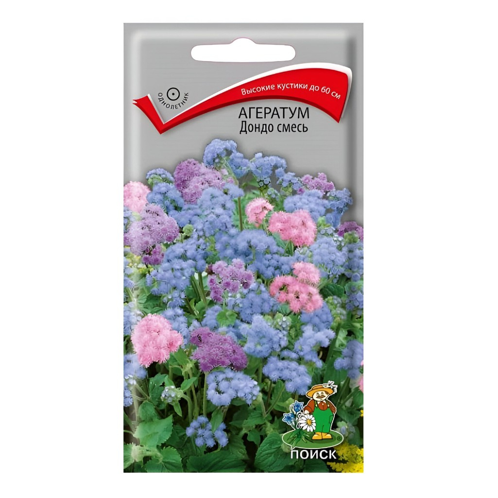 Семена цветов Агератум Дондо смесь, Поиск, для открытого грунта, 0.1 г — это высокорослый сорт агератума с крупными мохнатыми соцветиями разнообразной окраски. Растения отличаются обильным и продолжительным цветением, подходят для оформления миксбордеров и высоких бордюров.