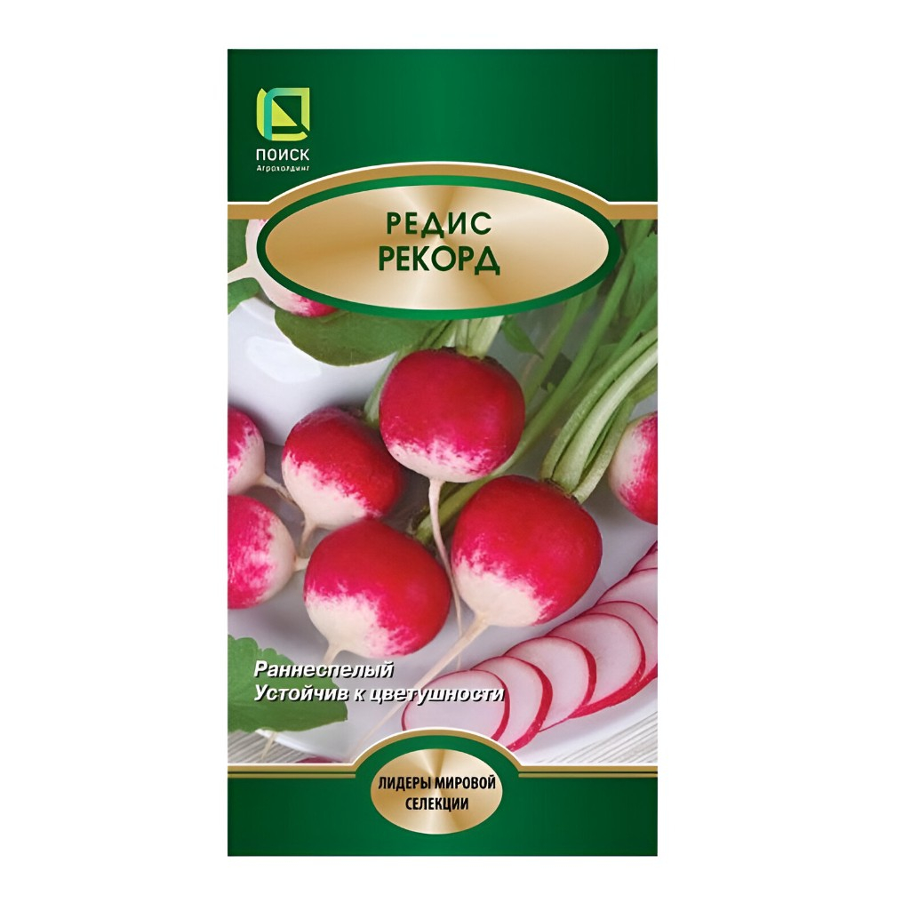 Семена Редис Рекорд, раннеспелый, однолетник, Поиск, 3 г — это неприхотливый и высокоурожайный сорт для быстрого получения свежей продукции. Подходит для выращивания в открытом грунте и под плёночными укрытиями.