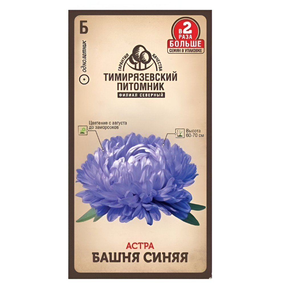 Технические характеристики семян цветов Астра Башня синяя пионовидная Тимирязевский питомник 0.2 г