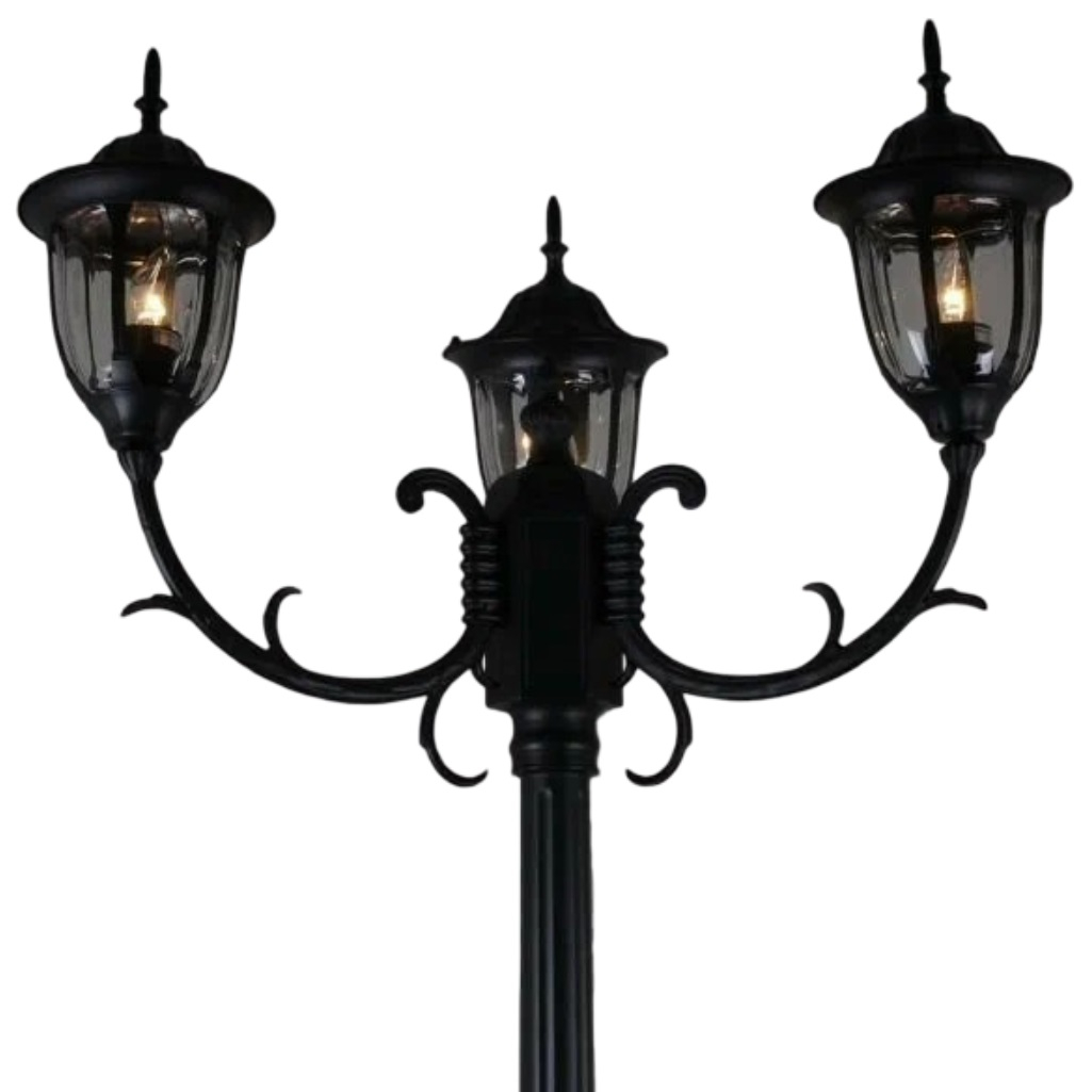 Светильник уличный Reluce 00867-0.7-001SL 2,0M ВК ландшафтный, 60 Вт, Е27, IP44, черный предназначен для оформления садов и парков, украшения уличных композиций, декорирования придомовых территорий. Площадь освещения составляет примерно 3 кв.м. Светильник крепится на грунт, основание имеет высоту 200 см. Конструкция 3-х плафонов, которые выполнены в классическом стиле, защищает стеклянную часть от осадков. Плафоны и основание светильника изготовлены из металла. Лампа накаливания мощностью 60 Вт обеспечит яркий свет на территории и общая мощность светильника составит 180 Вт. Маркировка IP44 означает защиту устройства от проникновения пыли, однако, светильник не защищен от сильного дождя или полного погружения в воду.