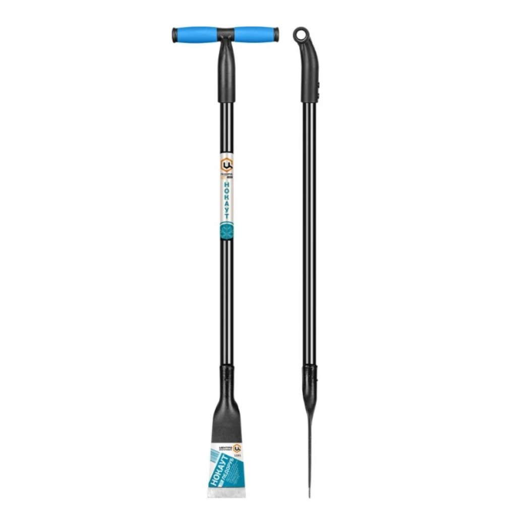 Ледоруб Центроинструмент Нокаут 1221, Т-образная ручка, закаленная сталь, длина 1270 мм - это инструмент с высокопрочной конструкцией с Т-образной рукояткой, которая помогает передать необходимое усилие. Цельнометаллический черенок не гнется во время работы. Острое лезвие из закаленной стали предоставляет максимальную эффективность в борьбе с оледенением на тротуарах.