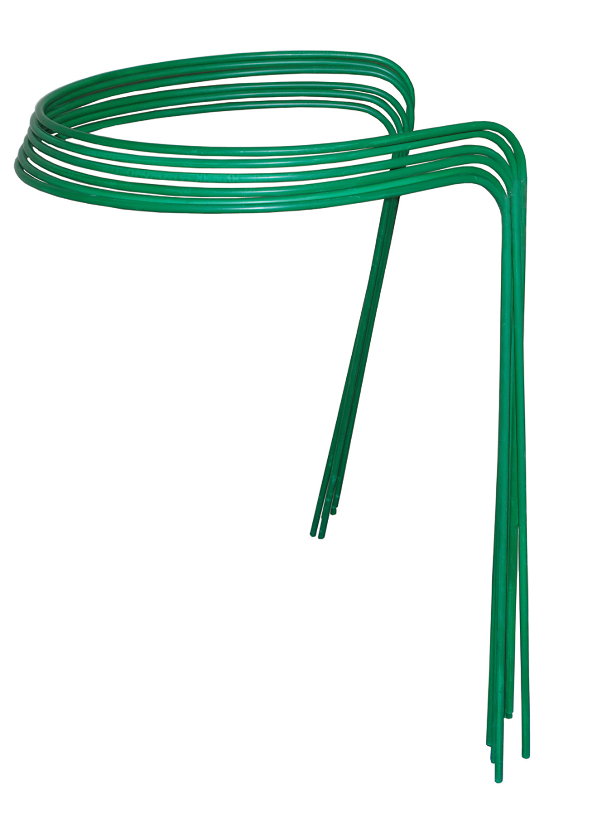Подставка под куст большая, диаметр 60 см, высота 75 см, опора для растений служит для поддержания растений и придания им нужной формы. Её устойчивость обеспечивается стальной трубой диаметром 10 мм, а покрытие из ПВХ защищает от коррозии. Конструкция имеет форму полуокружности на двух ножках, которые можно легко установить в землю. Она также легко демонтируется и переносится при необходимости. Эта подставка предназначена для декоративных и плодово-ягодных кустарников, таких как крыжовник и смородина, и помогает поддерживать их ветви в вертикальном положении, предотвращая их опускание до земли под весом плодов и листьев.